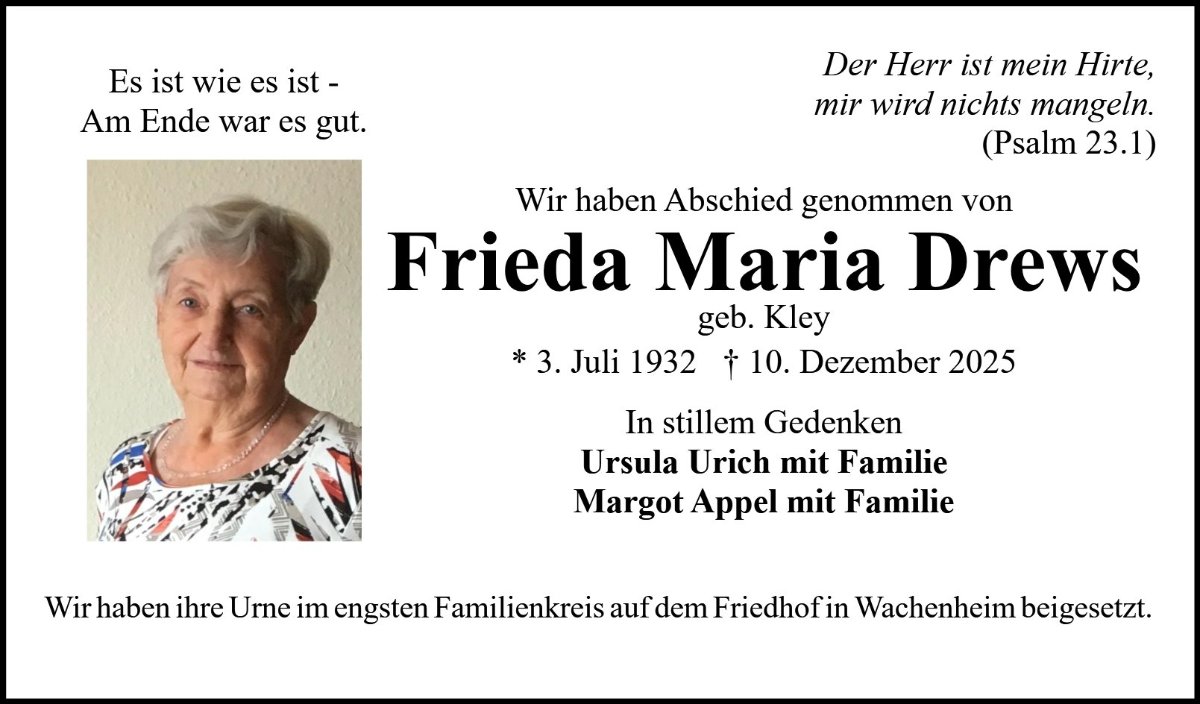 Frieda Drewsgestorben am 10. Dezember 2025