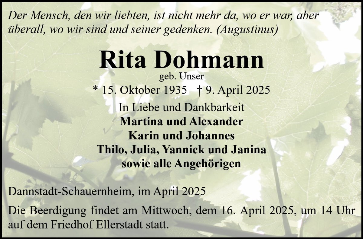 Rita Dohmanngestorben am 9. April 2025